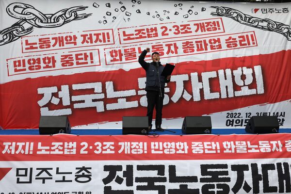 A South Korean union leader speaks at a rally. The future just got brighter for young people, as economic power shifts back to workers and away from asset holders, John Rapley writes.Chung Sung-Jun/Getty Images