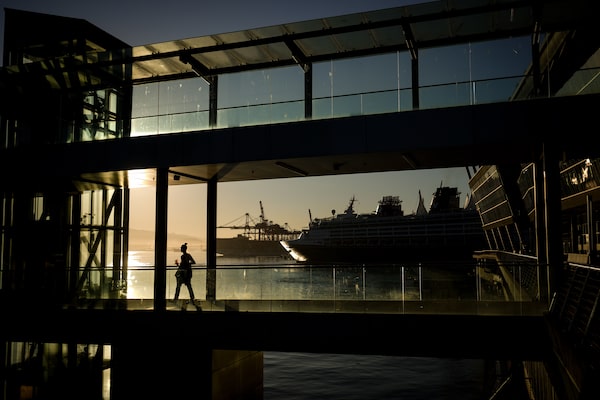 A woman is silhouetted on a walkway at a port in Vancouver, on Aug. 14, 2023.DARRYL DYCK/The Canadian Press