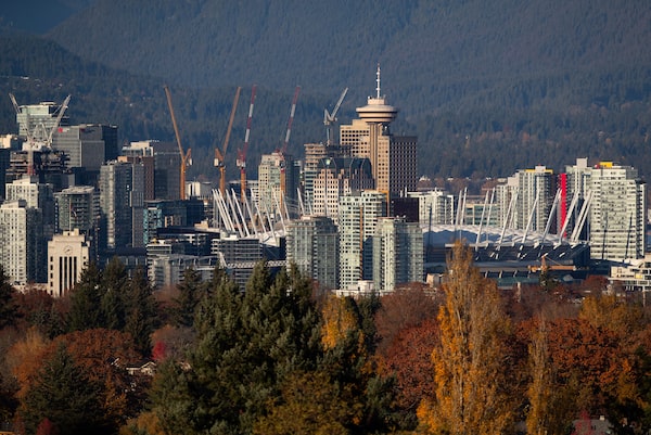 Construction cranes loom over the Vancouver skyline on Nov. 8, 2020.DARRYL DYCK/The Canadian Press