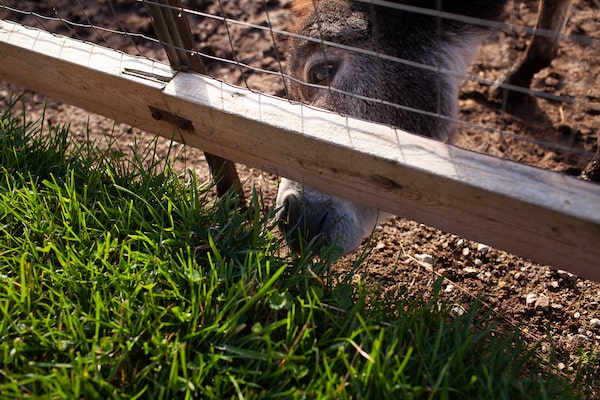 A miniature donkey grazes on the lawn of Camar Farm near Cambridge, Ont. on Oct. 24, 2020.Justin Langille/The Globe and Mail