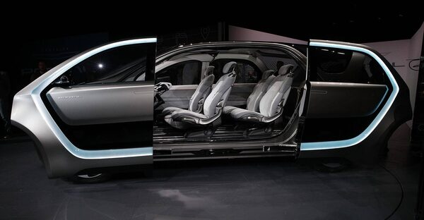 The Chrysler Portal, an electric-powered concept mini-van focused toward the millennial generation, is seen with its sidedoors opened during a press event for CES 2017.Alex Wong/Getty Images