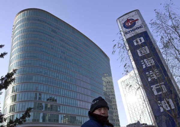 A man walks past the headquarters of the state-owned China National Offshore Oil Corp. (CNOOC) in Beijing, China Saturday, Dec. 8, 2012.Andy Wong/The Associated Press