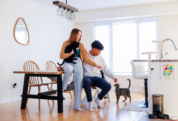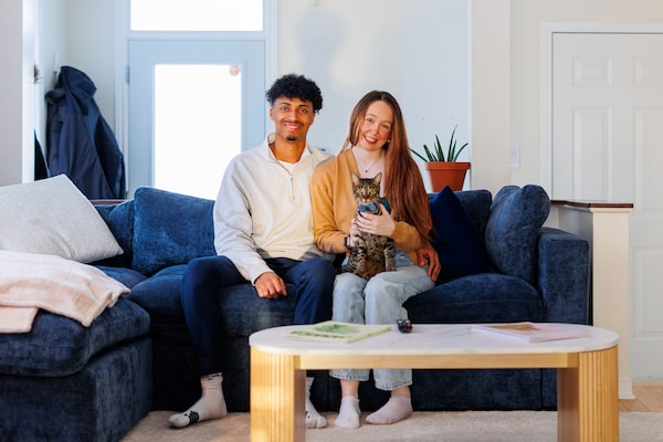 Ella Campbell and Tyrone Ajani with their cat Tequila. The couple were searching for a starter home with three bedrooms.Keito Newman/The Globe and Mail