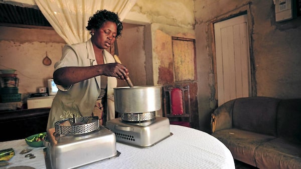 A woman in Mozambique uses an ethanol cookstove supplied by the Novozymes corporation to replace harmful, charcoal-based indoor stoves – and, not coincidentally, to expand its future markets for the ethanol it produces.Jeffrey Barbee