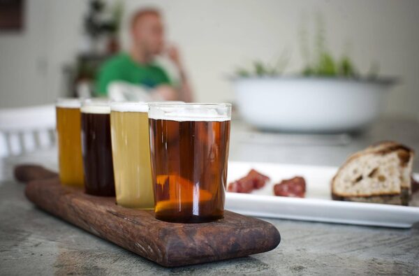 A tasting flight of beer that includes from right to left Life, Sunshine, Naturtrb and Merckx served with the house charcuterie board at 33 Acres Brewing Company in Vancouver, British Columbia, Wednesday, May 21, 2014.Rafal Gerszak/The Globe and Mail