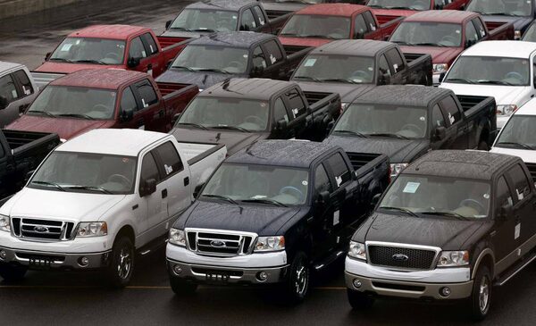 Ford pickup trucks sit in a holding lot after coming off the assembly line in Dearborn, Mich.GARY CAMERON/Reuters
