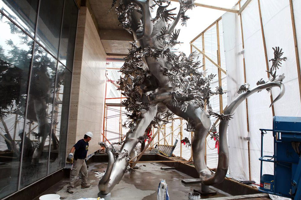 Zhang Huan’s sculpture in polished stainless steel was unveiled in 2012 at the Shangri-La hotel. The artist said that “The doves in the tree symbolize the peace of the world, and my wish is for beautiful city life to be shared by mankind and nature."