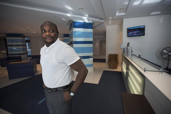 Prince Abiona, site manager of the condo at 600 Fleet St. is seen on Thursday. Abiona sometimes spends three hours a day surfing the internet looking for people renting out condo units in his building. Usually when an owner or renter is caught, they stop renting on sites such as Air BnB or Kijiji. (Fred Lum/The Globe and Mail)Fred Lum/The Globe and Mail
