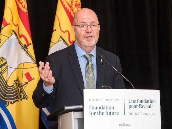 New Brunswick Finance and Treasury Board Minister René Legacy at a press conference before delivering the provincial budget in Fredericton on March 17.Stephen MacGillivray/The Canadian Press
