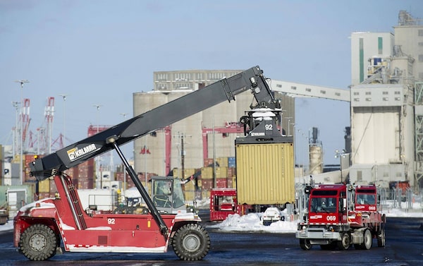 Trucks unload containers from cargo ships in the Port of Montreal, Monday, January 4, 2016.Graham Hughes/The Canadian Press
