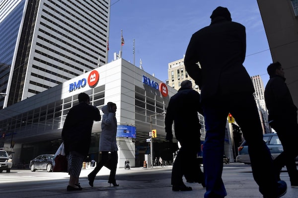 Pedestrians heading east across Bay St. at King St. West on April 17 2014. The Bank of Montreal is on the opposite corner.Fred Lum/The Globe and Mail