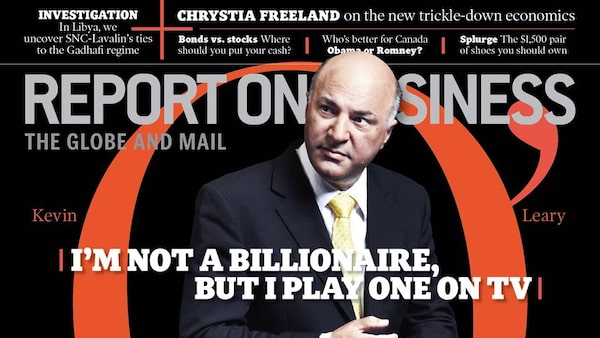 O'Leary himself likes to tell the story of being buttonholed by a man in a bathroom at Toronto's Pearson International Airport not long after Dragons' Den went on the air. The stranger told O'Leary he was a "total asshole." This is an anecdote that O'Leary relishes. It shows he'd arrived.