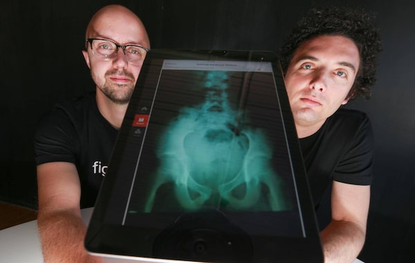 Richard Penner, left and Gregory Levey pose with their Figure 1 app in their Toronto office on Sept. 15, 2015. Figure 1 said its free online mobile tool reached the one million mark last month and that medical images, scrubbed of any identifying information, have been viewed more than 1.5 billion times on its platform.Glenn Lowson/The Globe and Mail