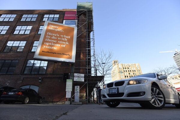 A billboard for Shopify's IPO is placed outside their Toronto office at 80 Spadina Ave. on Nov. 16, 2015. After Kinaxis went public in 2014 and Shopify did so last year, 2016 is set to pass without a Canadian tech IPO.Fred Lum/The Globe and Mail