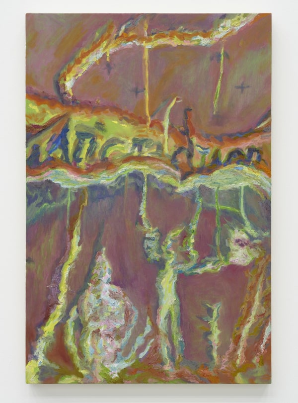 The Vancouver artist Rebecca Brewer is a painter; they apply oils to wood panels to create dreamscapes that hover between the abstract and the representational, offering a low viewpoint or hallucinogenic take on tangled images that might evoke the forest floor or the ocean depths but can’t be pinned down. Inspired by the 17th-century tradition of sottobosco, still life paintings of undergrowth, Brewer brings attention to the overlooked or hidden, and lets the viewer glimpse images in their figures the way one might see shapes in clouds.
