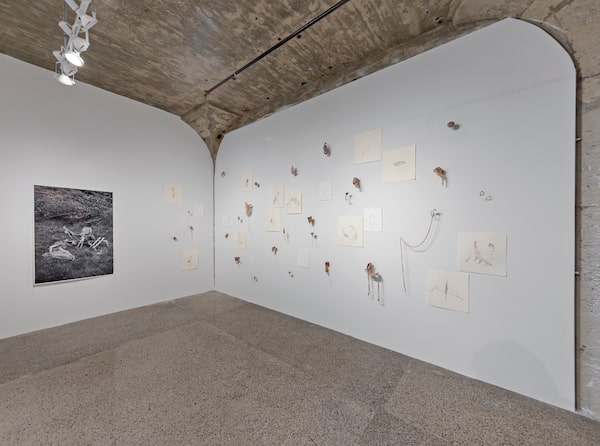 Since the 1990s, Vicuña has used scrap and natural materials washed up on beaches to create small sculptures she then allows to return to the sea, making art for the ocean rather than the gallery. There is a selection of more permanent versions of these fragile, jerry-rigged little items on the first wall of the biennial’s main hub at 32 Lisgar St., in the Queen and Dovercourt neighbourhood. They are a touching retort to materiality and acquisitiveness in art, even if Vicuña is now represented by an international gallery in New York, where she also lives when not in Santiago.