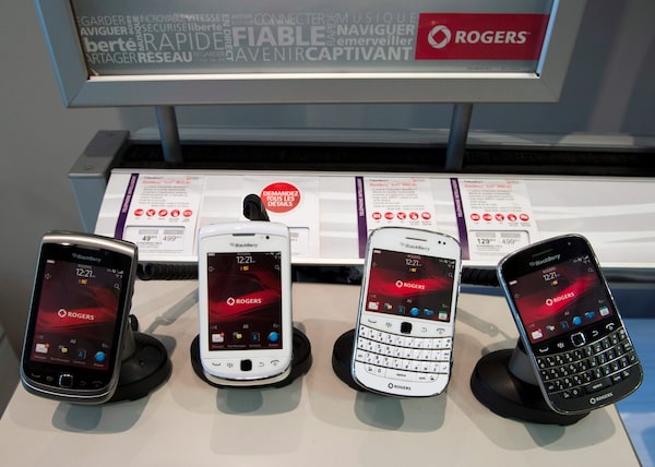 BlackBerry smartphones displayed at a Rogers store in Montreal on June 26, 2012.Ryan Remiorz/The Canadian Press