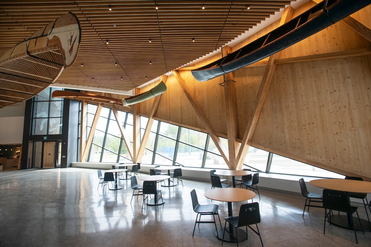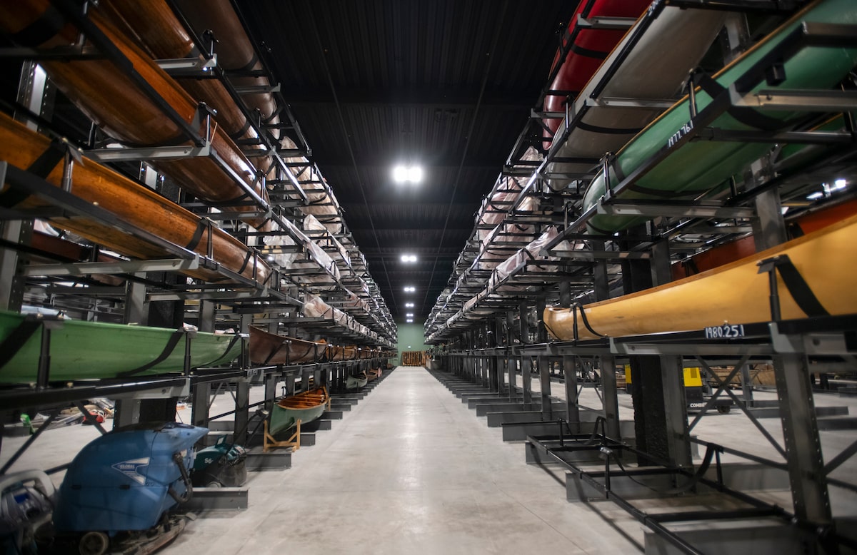 The design was led by Bill Lett and Michael Gallant of Unity, and Mr. Lett says the form and technology of the canoe have inevitably shaped the architecture. “But you don’t want to be too literal,” the architect cautioned. “The wood in this building is engineered; it’s not traditional heavy timber. There are a lot of analogies that aim to celebrate the history of the canoe and how that history has changed.”