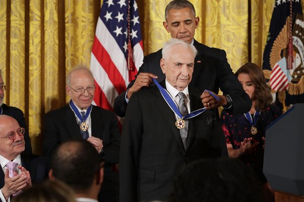 Former U.S. President Barack Obama awards the Presidential Medal of Freedom to Frank Gehry during a ceremony in the East Room of the White House November 22, 2016 in Washington, D.C.Chip Somodevilla/Getty Images