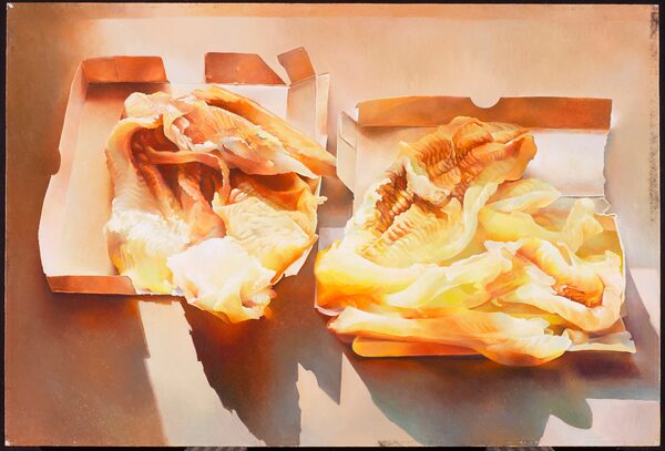 Mary Pratt, Cod Fillets on Cardboard Cartons, 1975, oil on panel.AGO Photography by Carlo Catenazzi/Art Gallery of Ontario