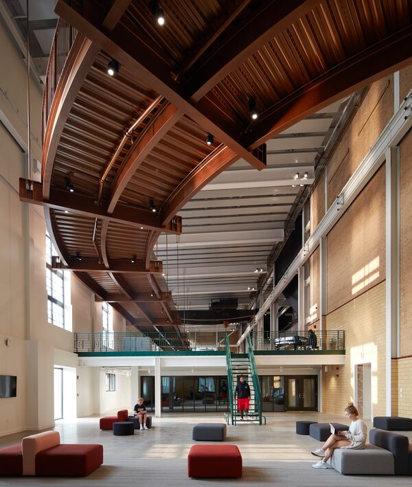 What does a grafted building look like? One example is Studio Gang’s Beloit Powerhouse, a Wisconsin power plant converted to a student centre and athletic centre. New uses for a big old masonry building – we’ve seen this model for decades in galleries such as London’s Tate Modern.