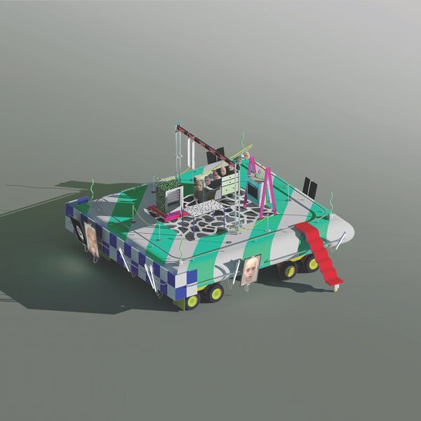 Igor Bragado and Miles Gertler's Parade of All the Feels features a model for an unrealized parade float that features a doll-house-sized apartment in a plastic bubble boasting two miniature screens playing a demonic talking head.Courtesy of the artists