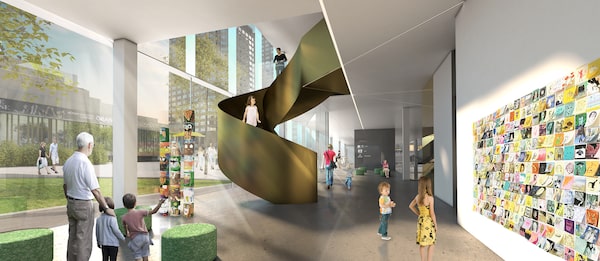 Saucier’s design concept follows the current vogue for arts buildings that make as many functions visible to the street as possible. What the public will see from outside the new MAC will mostly be itself: taking classes in educational studios, congregating in a three-storey glass foyer, or dining in a new garden restaurant that will float over the entrance plaza.