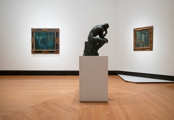 From left: Two Women at a Bar (1902), Auguste Rodin’s The Thinker, and Crouching Woman (1902). © Picasso Estate / SOCAN (2021)Fred Lum/The Globe and Mail