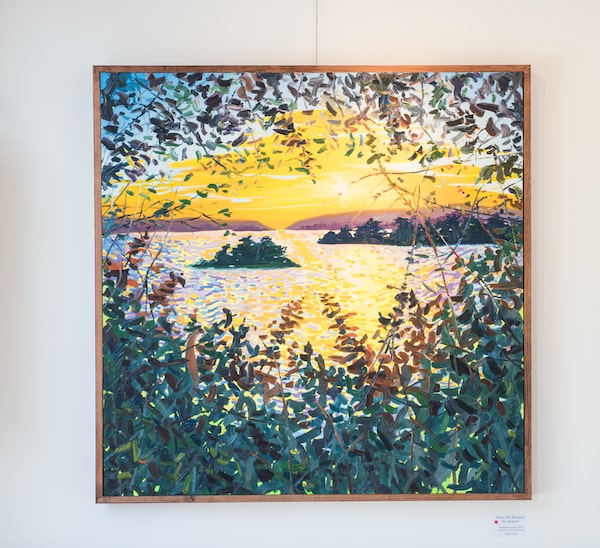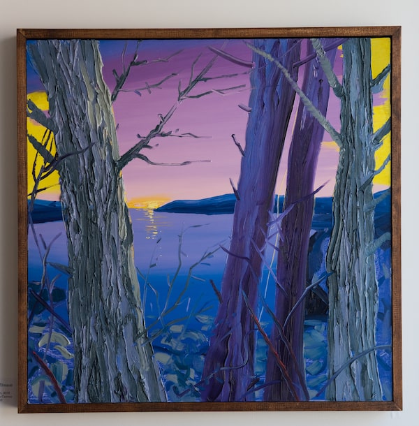 Amiri departs from this in her latest show, her sixth solo exhibition, which is devoted to her long-time romance with the sea. In the 14-painting series, which Amiri painted over the past four months during a temporary residency in picturesque Lunenburg, N.S., Amiri shifts away from figurative painting and into landscape mode. The resulting collection, titled Ocean’s Edge and on display until the end of August at the Laurie Swim Gallery in Lunenburg, is an amalgam of the artist’s recollections of the South Shore. She has spent most of the spring roaming the coastline and exploring its nooks and crannies, and then using oil and acrylic to transpose what she recalls onto canvas and wood panels.