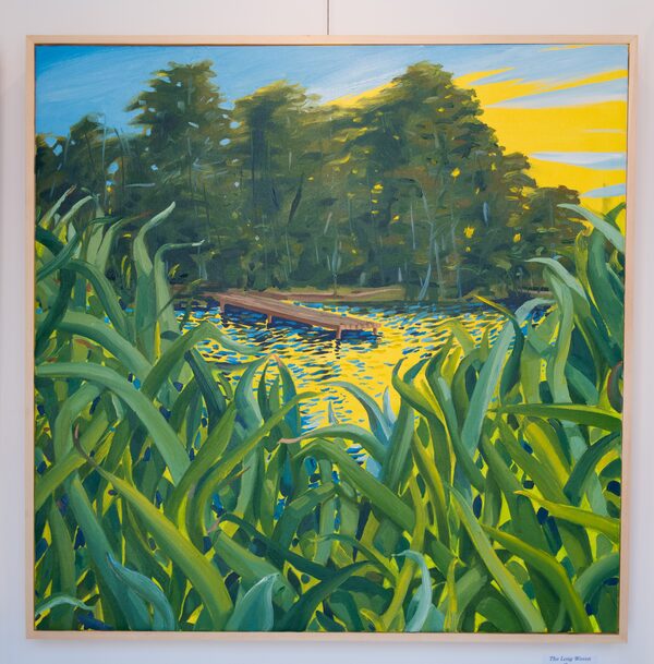 Dotted as it is with breathtaking views and quaint seaside communities, the South Shore has long been a muse for artists. Amiri’s paintings will have the pull of familiarity for anyone who has spent time along the famed section of the coast, although none of her pieces aims to represent a single, specific place. Still, they conjure its majestic aura with ease.
