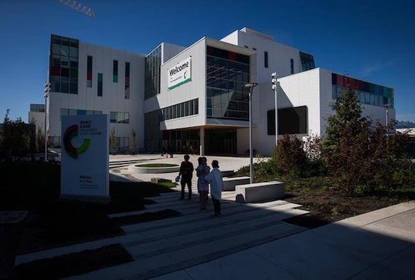 People stand outside the new Emily Carr University of Art and Design campus in Vancouver on Sept. 1, 2017.The Canadian Press