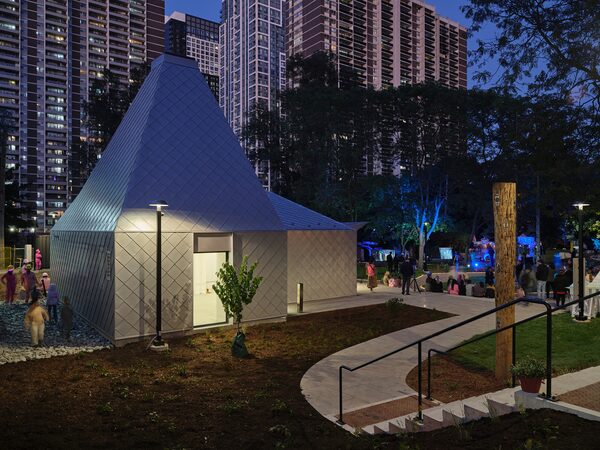 The clowns had a role in the design, too – asking locals for their input on the new public building, “wearing funny glasses and clipboards and asking people about their dreams for the park,” Houston recalls. “It was silly and irreverent and LGA was totally on board for it.”