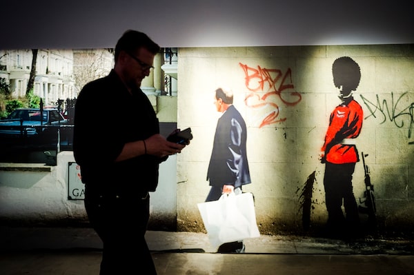 But Lazarides has no current relationship with Banksy and told The Globe and Mail the artist did not respond to a message when first informed of the show, which started touring in 2016. Apparently, neither Banksy nor his management have complained so far; the artist’s website says only that he is not represented by Lazarides. The dealer argues that Banksy belongs to the public and the public has a right to see the work, but when asked whether the artist would like the show, the dealer replied “Absolutely not.”