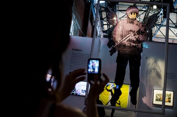 The Art of Banksy, which has grown in scale since first stops in Melbourne, Amsterdam, Tel Aviv and Auckland, is organized by art dealer Steve Lazarides, who was Banksy’s close collaborator and agent from 1997 until 2008, as well as concert promoters Live Nation and Starvox Exhibits. The organizers stress it contains no art ripped from the street; rather, it features about 80 works on loan from collectors who bought them online or at Banksy’s own commercial shows.