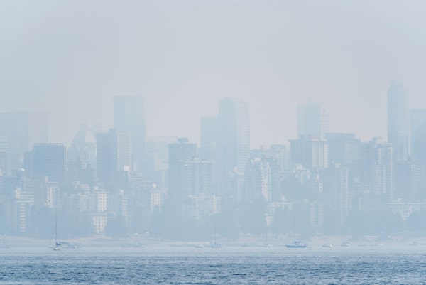 This file photo taken in August 2018 shows the Vancouver skyline under heavy haze as seen from Jericho Beach.DON MACKINNON/AFP/Getty Images