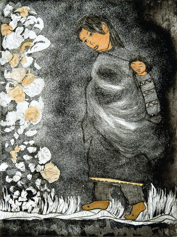Alanis Obomsawin's Mother of Many Children VI: The dozen prints in Mother of Many Children celebrate the close physical bond of Indigenous mothers and their infants.Musée des beaux-arts de Montréal