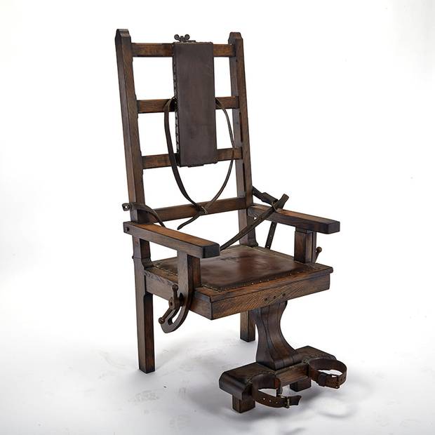 Value of the combined sale, by pre-sale estimate, is $155,850 to $230,900. The lots with the highest estimates, at $10,000-$15,000 and $8,000-$12,000, respectively, are an early 20th-century electric chair from New York's Auburn Correctional Facility (although Auburn did host the first death by electric chair, in 1890, this particular chair was not used for executions but for electric shock punishment) and a pair of beaded moccasins that belonged to the famous Hunkpapa Lakota holy man Sitting Bull (1831-1890).