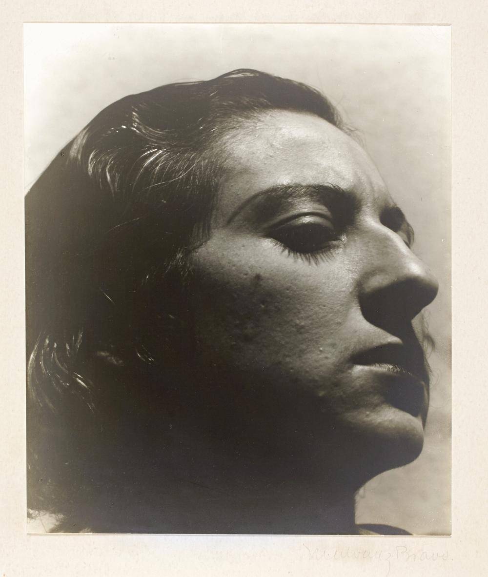 Harry Malcolmson: This is a picture of Bravo’s first wife, Lola, also a photographer, whom he met in the mid-1920s in the aftermath of the Mexican Revolution. What is remarkable about it is that it ended the period where portraits by serious photographers, even in Latin America, were made on the European model, so to speak. He presents Lola in her Mexican-ness. What we see is the Mexican character of purposefulness, indomitability, resilience. It’s almost like a bronze sculpture in its coloration. The way the head fills the space, the unconventional cropping, it makes you think of a sculpture on a pedestal.