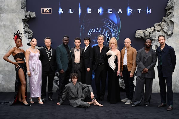 Diem Camille (far left), Sandra Yi Sencindiver, Noah Hawley, Babou Ceesay, Samuel Blenkin, Alex Lawther, Sydney Chandler, Timothy Olyphant, Essie Davis, David W. Zucker, Jonathon Ajayi and David Rysdahl attend the 'Alien: Earth' European premiere at the Barbican Centre on July 29 in London.Kate Green/Getty Images