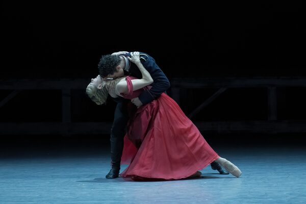 Part of the production’s power comes from the beautifully realized costumes (designed by Emma Ryott) and the minimalist set (designed by Spuck with Jörg Zielinski). In the crowd scenes, the women wear weighted satiny skirts that move with gorgeous buoyancy, gleaming like an oil painting under light. Ryott uses bold colour to enhance drama and tension; Anna’s blood red gown clashes with Princess Betsy Tverskaja’s magenta one (danced by the always-captivating Hannah Galway), until the latter somehow fades into the muted greens and blues worn by the others.