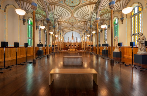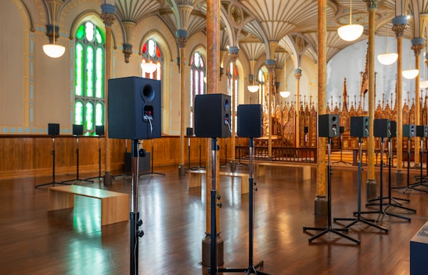 To create the installation, Cardiff recorded 40 different voices in Britain’s Salisbury Cathedral Choir as they sang Spem in Alium, a devotional work by the 16th-century English composer Thomas Tallis. Then she assembled an oval of speakers, one for every voice track. The effect is that the visitor who walks into the sacred space – the work has been installed in many plainer galleries, too, but the Ottawa chapel feels particularly appropriate – can move from speaker to speaker, picking out one voice at a time in the motet. Ah, here’s the bass; there’s a soprano.
