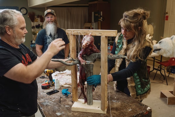 The Robertsons purchase most of their animal hides from Indigenous hunters and trappers, and do not harvest any animals themselves. In most cases, the team receives only animal hides, and works with a preformed foam mannequin to create the resulting taxidermal specimen.