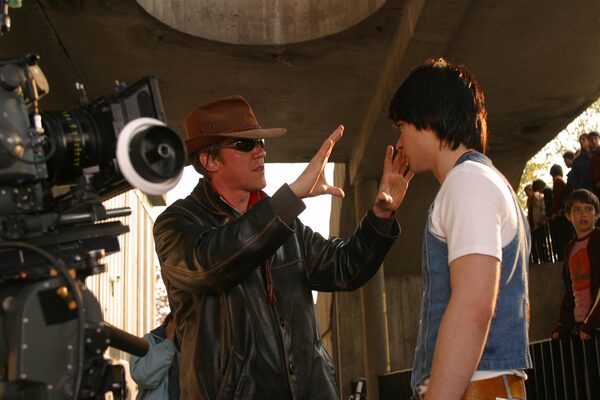 Jean-Marc Vallée, left, and Marc-André Grondin on the set of C.R.A.Z.Y.