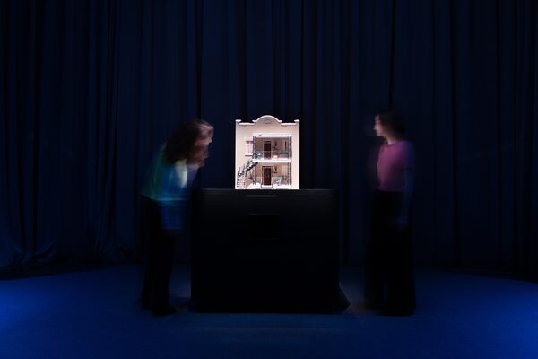 The Mixtape exhibit begins in a darkened room with a small illuminated model of Vallée’s Montreal childhood home.Camille Dubuc/Supplied
