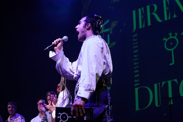 Jeremy Dutcher after winning the Polaris Music Prize at Massey Hall in Toronto on Sept. 17.Paige Taylor White/The Canadian Press