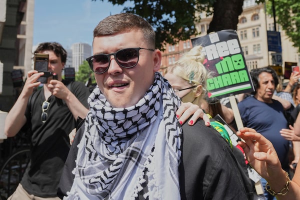 Liam Óg Ó hAnnaidh, aka Mo Chara, a member of the Irish language band Kneecap was previously charged with a terrorism offence relating to displaying a flag in support of Hezbollah during a November 2024 performance.Kin Cheung/The Associated Press