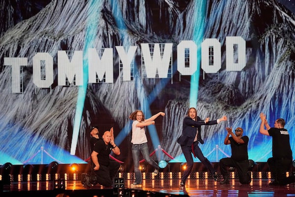 Tommy Cash from Estonia, centre, performs the song Espresso Macchiato during the Grand Final of the 69th Eurovision Song Contest.Martin Meissner/The Associated Press