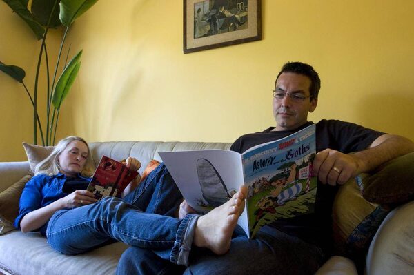 Stephanie Morgenstern and Mark Ellis, actors and co-writers on the TV show Flashpoint, read together in their Oakville, Ont., home on June 29, 2010.Sarah Dea/The Globe and Mail