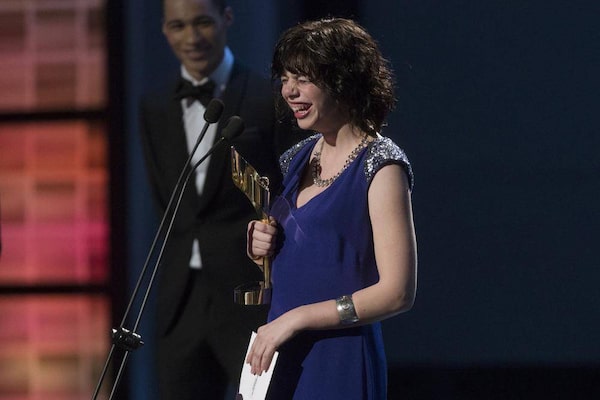 The most touching moment of the second annual Canadian Screen Awards Sunday was surely that when Gabrielle Marion-Rivard accepted the prize for best actress for her role in Gabrielle. A joyful and grinning Marion-Rivard, a woman with Williams syndrome taking on her first professional role, carefully placed the statuette on the floor and delivered a few well-chosen thank-yous in French before announcing "I love you, Canada."