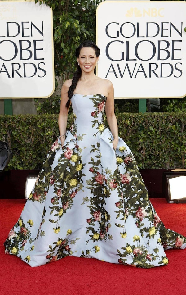 Actress Lucy Liu wore a floral gown on the Golden Globes red carpet.Reuters